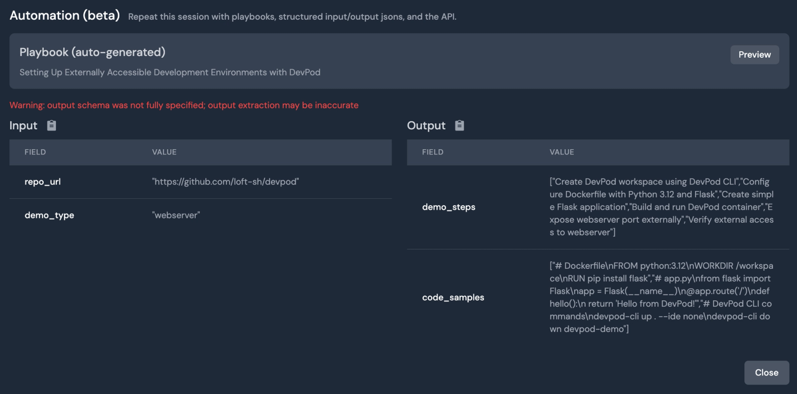 View structured output on any session page with CMD+I, or click “Show structured IO” in the dropdown menu to the right of your session title.