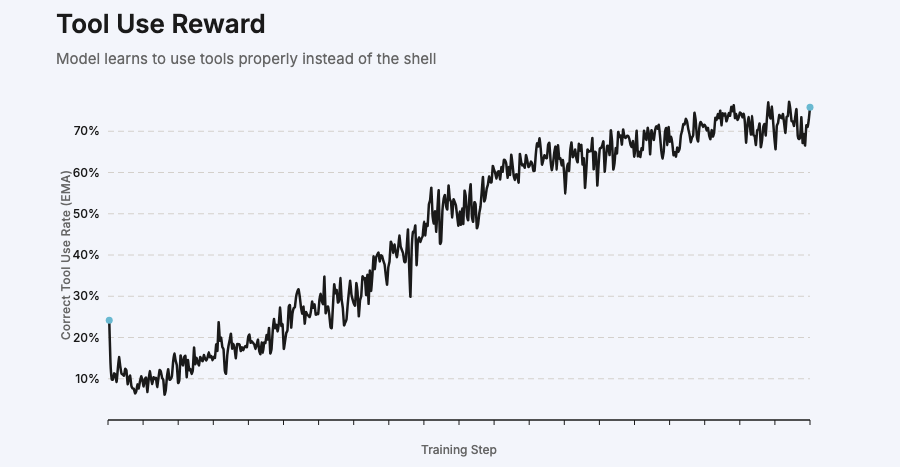 We also were able to significantly reduce occurrences of the model relying on the terminal and other improper tool use cases throughout training, avoiding cases where Windsurf users have to manually accept commands instead than letting the agent work continuously.