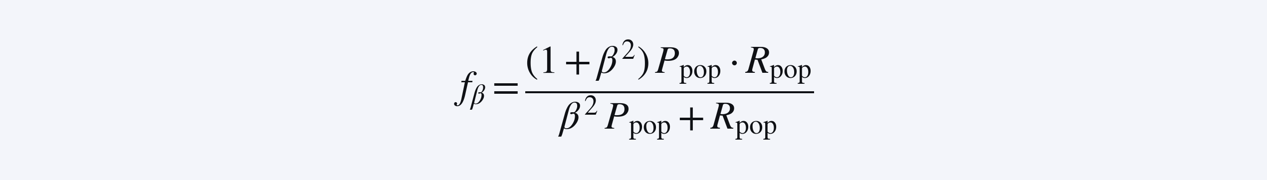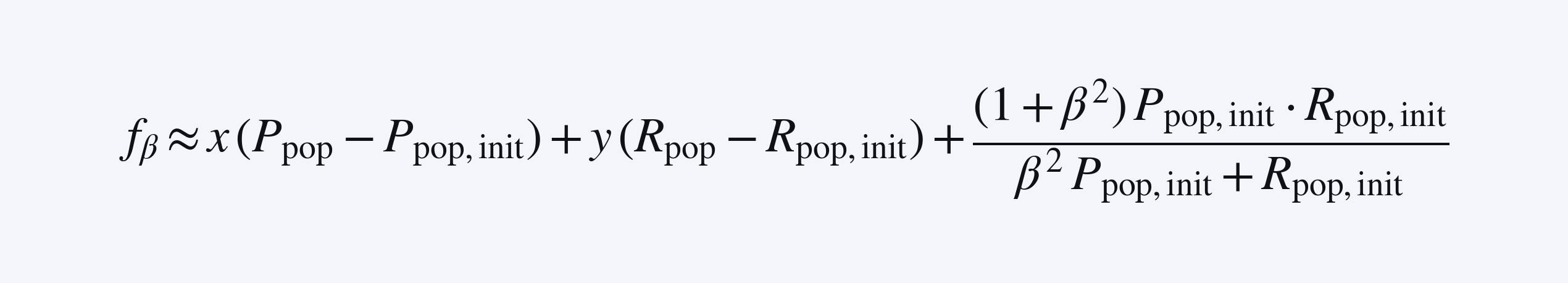 Since we have a good sense of the initial values of P_pop, R_pop (call these initial values P_pop,init and R_pop,init), and the initial distribution of TP/FP/FN rates, then we can approximate the f_β value with a suitable first order linear approximation in P_pop and R_pop: