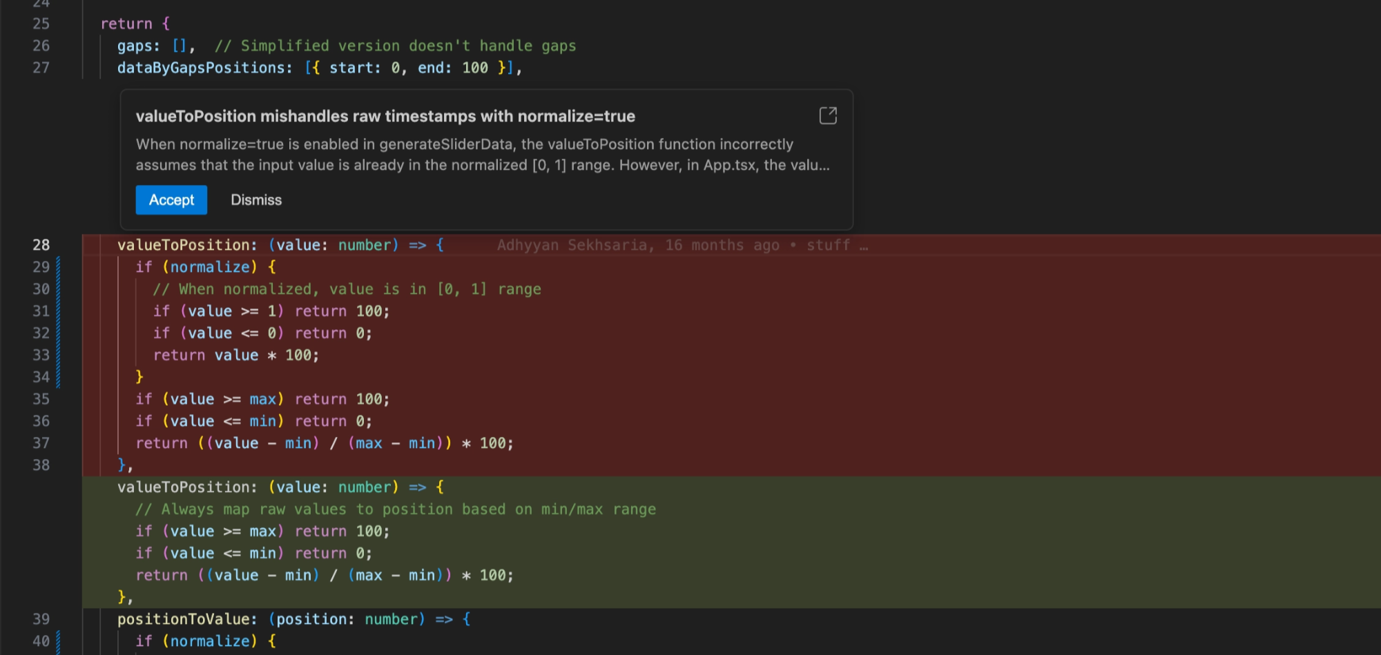 🚨 Choice of β: Early iterations of the model used β=1 and produced many false positives, flagging many benign diffs as bugs during dogfooding. To mitigate this, we decided to switch to β=0.5, emphasizing precision.